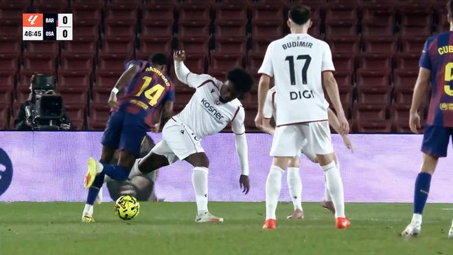 奥萨苏纳虽然以防守为主,但是球队一旦后场断球,由守转攻的节奏非常快,布季米尔连续两脚射门都对霍安加西亚造成了威胁。20分钟之后,巴塞罗那逐渐开始加速,埃里克加西亚、佩德里、亚马尔连续的远射差之毫厘!