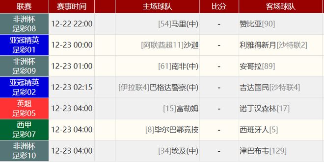 其他赛事比分: